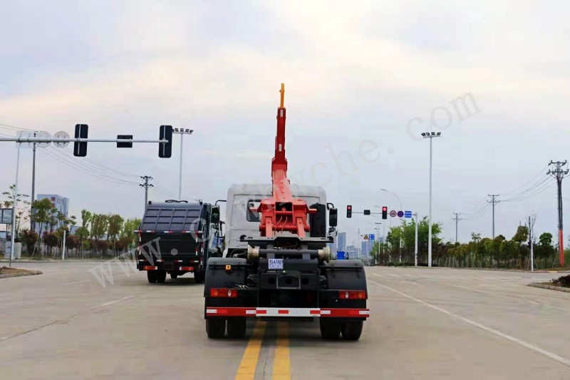 东风天锦15吨勾臂垃圾车上装细节展示: