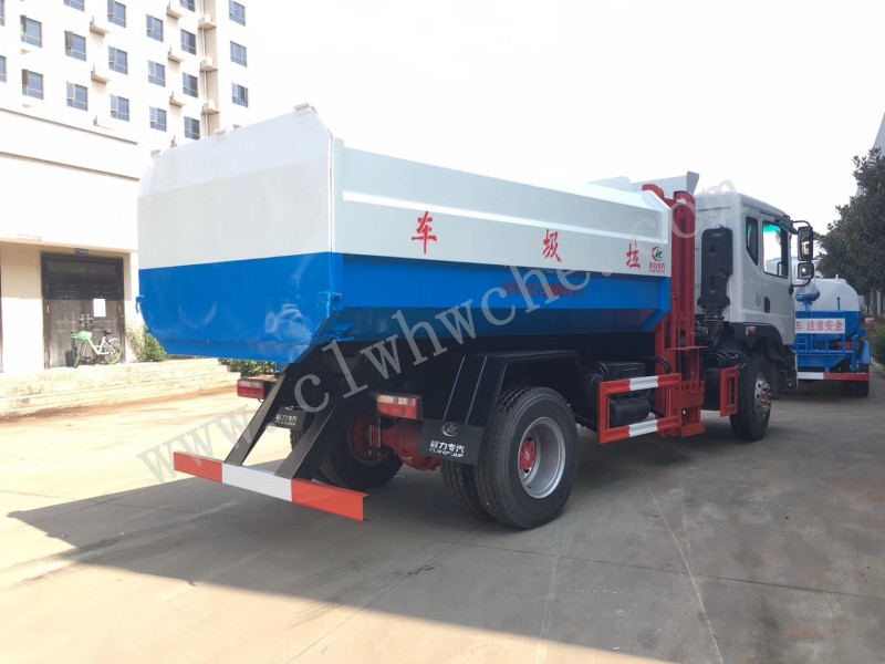 挂桶式垃圾车又叫自装卸式垃圾车主要用于各环卫市政及大型厂矿部门运载各种垃圾,亦可运输灰、砂、石、土等散装建筑材料,也可以在矿山或煤矿中运送矿石或煤。由密封式垃圾厢、液压系统、操作系统组成。