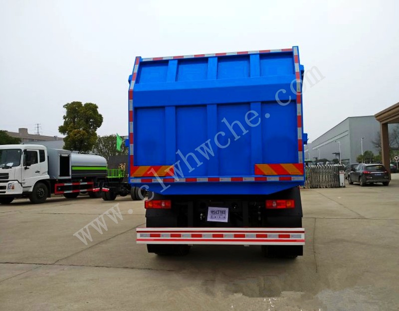 采用国标Q235碳钢板制作,边板3mm底板4mm.厢体容积16立方,弧形厢体,采用国内**品牌油缸、高密度高压油管、多路阀和油泵,带手动液压**及PLC一健**系统填料压缩,不带后翻转机构。箱体形状方形,材质边3底4碳钢,箱体后门液压开启,油缸举升自卸,顶部标配密封,可选装顶盖液压侧开启、前划开启。