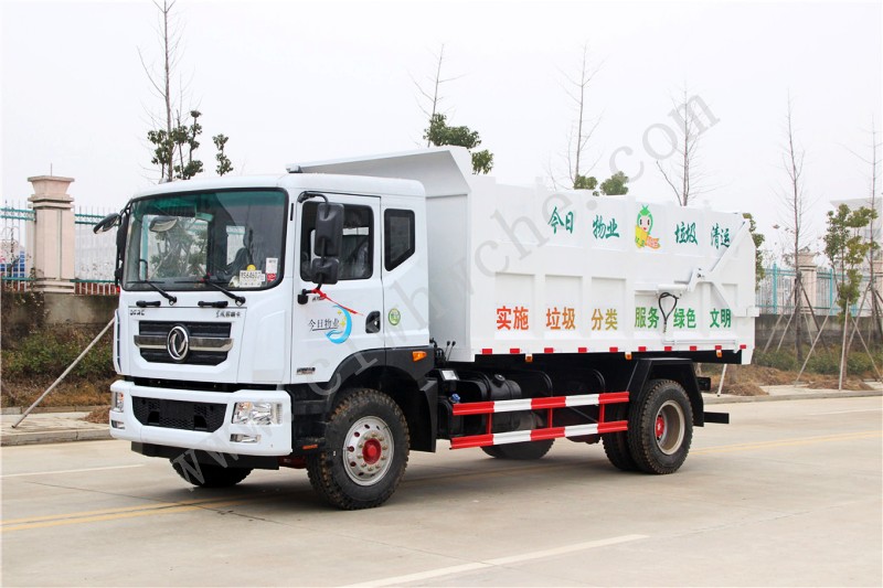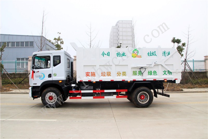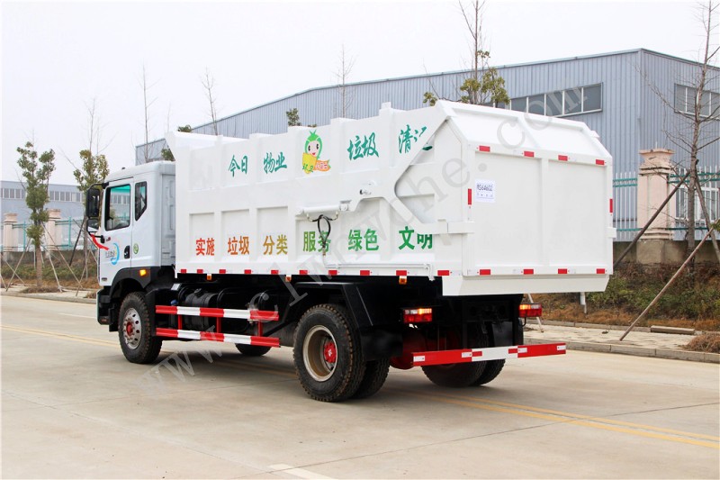对接式垃圾车是目前国内广泛采用的垃圾压缩站垃圾转运方式,可以实现一车多站,大大降低了配备成本和空间等等。其专用装置的功能均以汽车发动机为动力,通过液压机构手动或电控,气控来实现。车辆的箱体采用优质碳钢板全密封焊接结构,具有强度高,重量轻,不产生二次污染等优点。