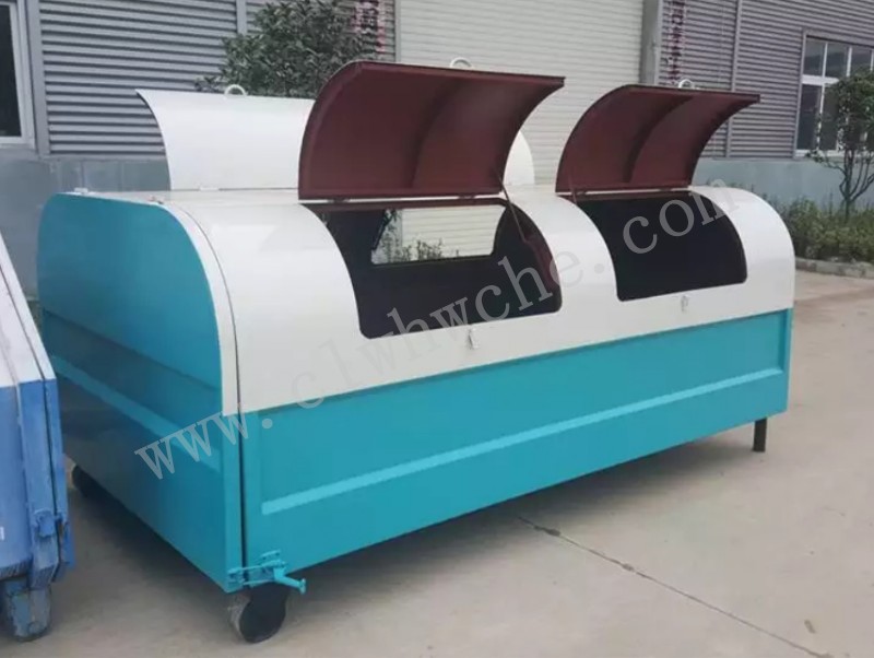 2、箱体两侧各设置1个投料口,还分别设置投料盖,投料口的设置能**大限度满足箱体容积使用率,减轻环卫工人工作强度;