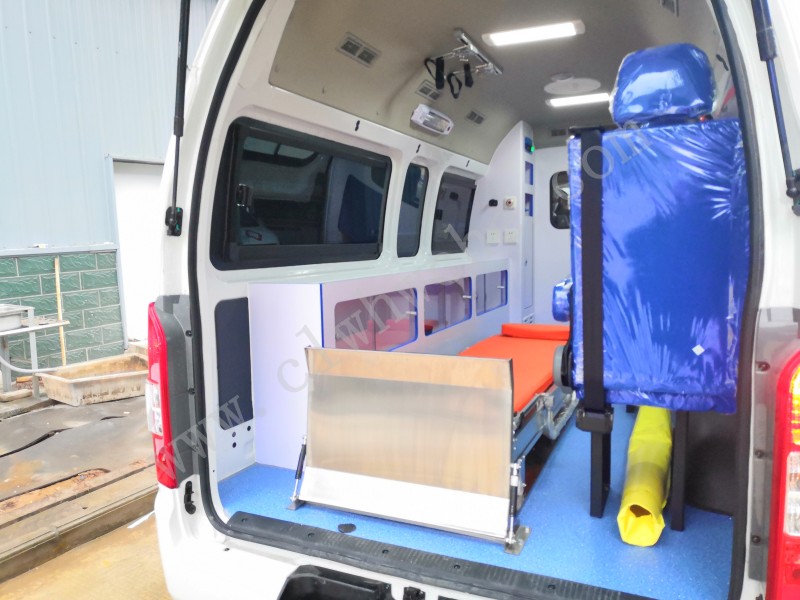 1.**座椅。2.异型**灯。3.电子触摸屏**。4.玻璃面板触摸屏**。5.自动**时间消毒灯。6.**舱及倒车双监视。7.其他医疗仪器或专用设备。8.呼吸机吸塑顶部一体化造型。9.担架底座台(可放铲式担架)。10.负压净化设备(监护型可选装)。11.担负压隔离担架仓(监护型可选装)。