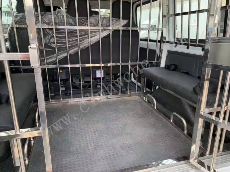 18、中隔栅栏:车内不锈钢囚笼隔断,开门,带门铰链及锁止插销。侧窗栅栏:不锈钢囚笼隔离栏。后窗栅栏:不锈钢囚笼隔离栏。尾隔栅栏:不锈钢囚笼隔断,带门铰链及锁止插销。