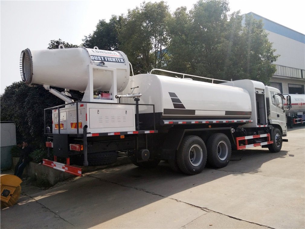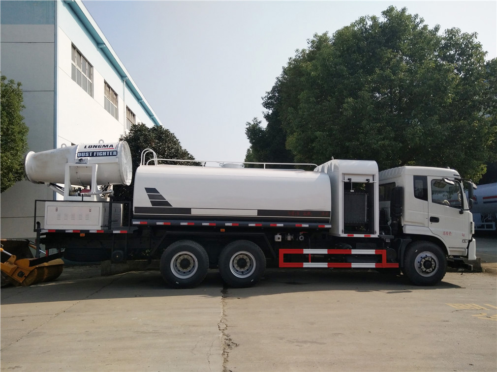 | 其他 | 1,罐体有效容积:13.44立方米,罐体尺寸(mm):4500×2400×1600;整车长/前悬的对应关系为(mm):10640/1515,10575/1450,10375/1250.2,侧,后防护装置材料材质:Q23**,侧,后防护均用连接,后部防护装置断面尺寸(宽×高)60×150(mm),后部防护离地高度:510mm;3, ABS生产厂家: 东科克诺尔商用车制动系统(十堰)有限公司,型号:3631010-C2000;4,随底盘选装驾驶室,选装驾驶室遮阳板与侧面卧铺开窗口;5,文字喷涂位置,车辆颜色及局部细节可变化。5、专用装置:罐体和喷雾机,主要用于抑尘。选装不同的外形图片。专用装置为抑尘雾炮,型号为LM-40,生产厂家为湖北龙马汽车装备有限公司。 | ||