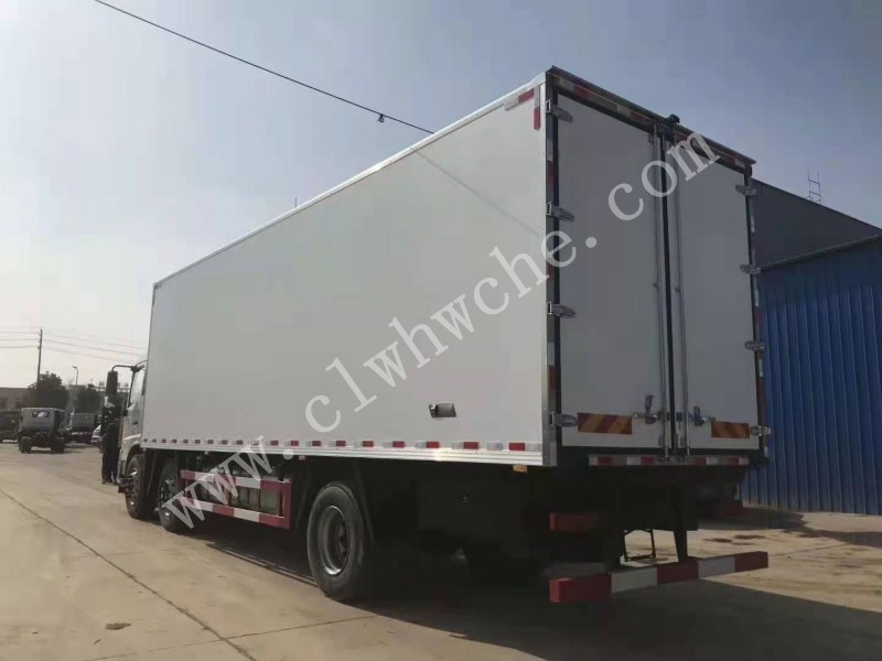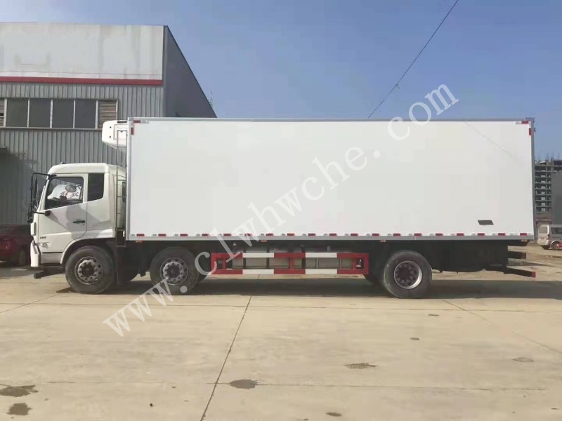 东风天锦KR前四后四9.68米冷藏车(冷藏车)又称为:冷冻车、保温车、厢式货车、防爆车、冷藏运输车, 冷藏机组:分为**式和非**式,非**式冷藏机组利用汽车发动机动力工作,能使相匹配货厢内**低温度可达到零下18度。**制冷机组必须加装**电瓶和柴油发动机,与非**式冷藏机组相比,它的制冷性能要好得多,能使相匹配货厢内**低温度可达到零下28度,而且不会因为汽车本身的故障原因而影响冷藏效果,但在生产造价上成本也要高些。