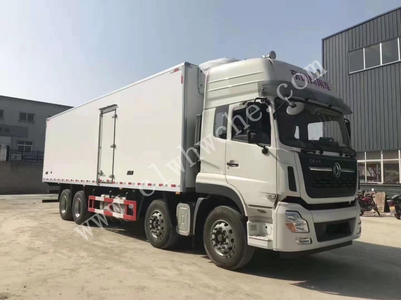 东风天龙KL前四后八9.4米冷藏车(冷藏车)又称为:冷冻车、保温车、厢式货车、防爆车、冷藏运输车, 冷藏机组:分为**式和非**式,非**式冷藏机组利用汽车发动机动力工作,能使相匹配货厢内**低温度可达到零下18度。**制冷机组必须加装**电瓶和柴油发动机,与非**式冷藏机组相比,它的制冷性能要好得多,能使相匹配货厢内**低温度可达到零下28度,而且不会因为汽车本身的故障原因而影响冷藏效果,但在生产造价上成本也要高些。