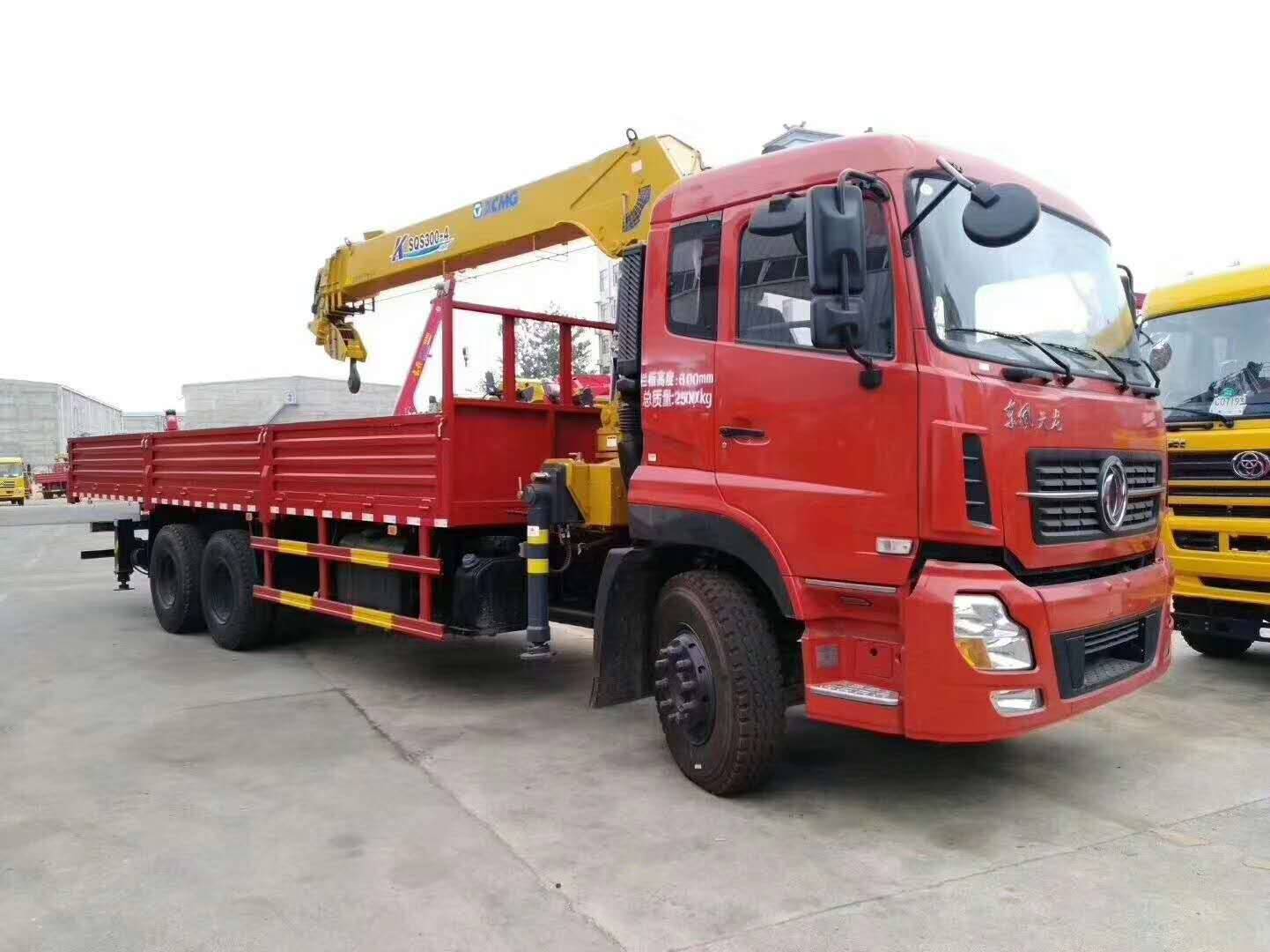 东风后八轮12吨徐工随车吊,新款D3豪华悬浮驾驶室,气囊座椅,天龙内饰,天龙液晶仪表盘显示,通道式内部空间(标准3人座椅),遥控锁+遥控钥匙×2,铝合金油箱+铝合金储气罐,国五玉柴6缸240马力发动机,法士特陕齿大8档(带高低速),11.00R20-18PR钢丝胎,300mm(6+8+8)三层直通大梁,前桥5.5吨,后双桥11.5+11.5吨,5900+1300mm轴距,带ABS,下防护,原厂法士特取力器,电动门窗,断气刹,排气制动,LED灯(左右开门灯),GB7258四项(大灯亮度调节按钮,刹车自动调节臂,防飞溅。上装徐工12吨双联泵四节直臂吊机,举升高度17.5米,工作半径14.5米。