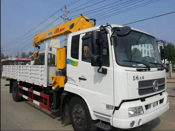 东风天锦6.3吨徐工随车吊,搭载了东风康明斯180马力国五发动机,全钢200L燃油箱,东风8档DF8S1000变速箱,4.5T前桥,9T单级减速后桥,1000R20钢丝胎,ABS,中控,气囊座椅,有前雾灯,有巡航系统,货箱尺寸:5700×2450×600,可上装5吨,6.3吨,8吨,各品牌系列吊机。