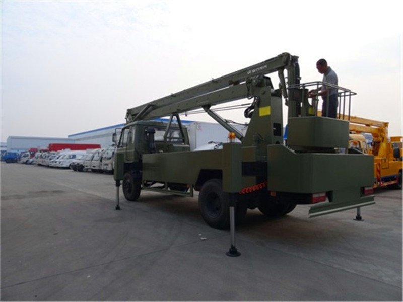 20米高空作业车上装使用三节折臂液压举升式设计,作业高度可达20米。各工作臂均装有定向平衡阀,用以提升臂架升、降、停止过程中的平稳性。转台、工作斗双工位操作,安全又方便。工作臂可360°全方位旋转,有效扩大作业范围,提高工作效率。东风153型20米高空作业车底盘配置: