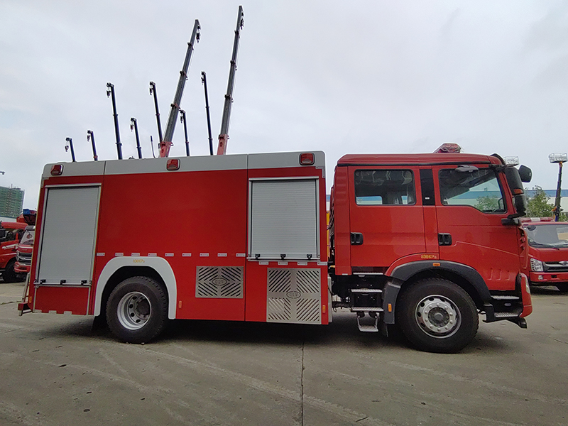 消防泵在箱体中间或后置,泵房左右两侧4个出水口,器材箱左右后侧均有新款易拉高强度铝合金卷帘门,器材支架采用欧洲技术生产的铝合金型材,内藏式塔接制造,全内六角连接结构,美观耐用。