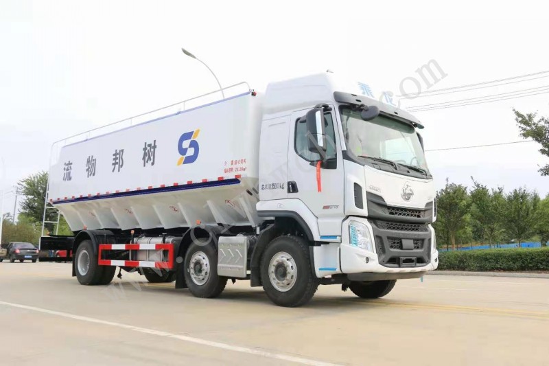 散装饲料车,又名散装饲料运输车,饲料运输车。结构简单、性能可靠、输送量大、操控方便、机动性强、对物料无污染等特点,广泛应用于各大中小型养殖企业的饲料的运输。