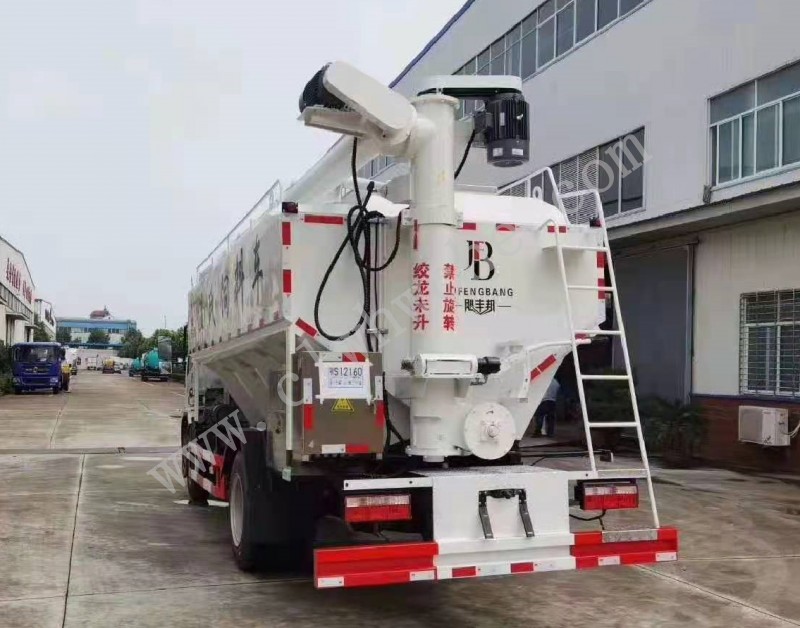 散装饲料车,又名散装饲料运输车,饲料运输车。结构简单、性能可靠、输送量大、操控方便、机动性强、对物料无污染等特点,广泛应用于各大中小型养殖企业的饲料的运输。